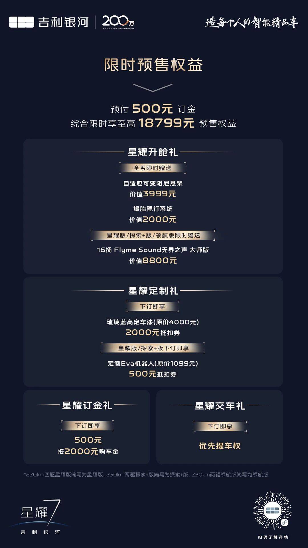 吉利汽车旗下全新中型插混轿车——银河星耀7正式启动预售,此次共推出4款车型,预售价格区间为11.28万元至14.28万元。作为银河家族的最新成员,新车以"涟漪美学"为设计核心,通过纵向直瀑格栅、可发光中网及锐利LED大灯等元素,打造出极具辨识度的前脸造型。车身尺寸方面,4958mm的车长与2852mm的轴距,使其稳居中大型轿车行列。